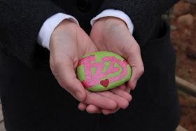 We used colorful acrylic paints - some parents wrote names, some drew pictures and another included a logo from the family's favorite sports team. I let the paint on Izzy's rock dry for several hours (some used a hair dryer to quickly dry their paint) then sprayed several coats of a shellack on the rock to protect the paint.